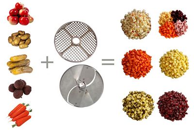 Основные работы в процессе приготовления пищи связаны с измельчением продуктов, и только затем необходимо смешивание компонентов с последующей термической обработкой. Вручную нарезать несколько килограммов овощей и зелени - занятие весьма трудоёмкое, которое обязательно потребует много времени. Для измельчения на профессиональных кухнях нередко используются такие устройства, как овощерезки и куттеры. Последние являются более совершенной формой блендеров, отличаются только формой ножей и возможностью превращения мяса в фарш.